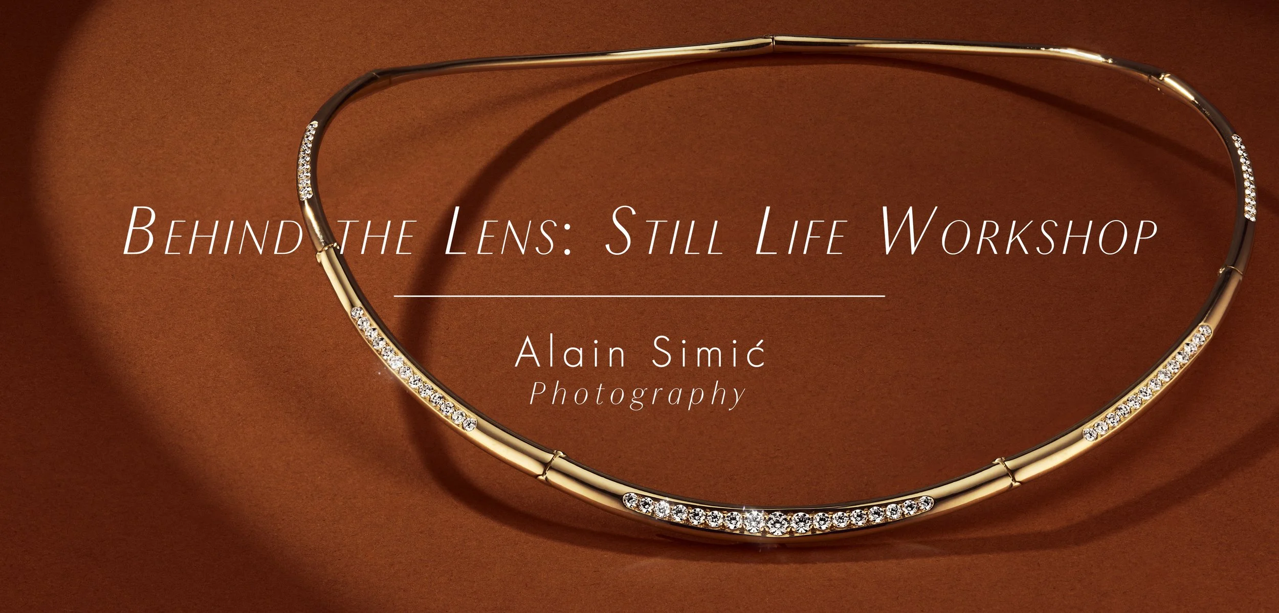 The session covered both the technical foundations (light shaping tools, types of light, lens choices, camera settings) and the more artistic side of jewelry photography—how to compellingly frame a piece, how to bring out its unique qualities, how to use negative space, how to create dynamic shadows, and, importantly, how to create imagery that connects with viewers. Beyond the technical foundations of shooting jewelry, Alain shared insights on preferred software, file naming conventions, workflow best practices, and overall shoot organization and design.